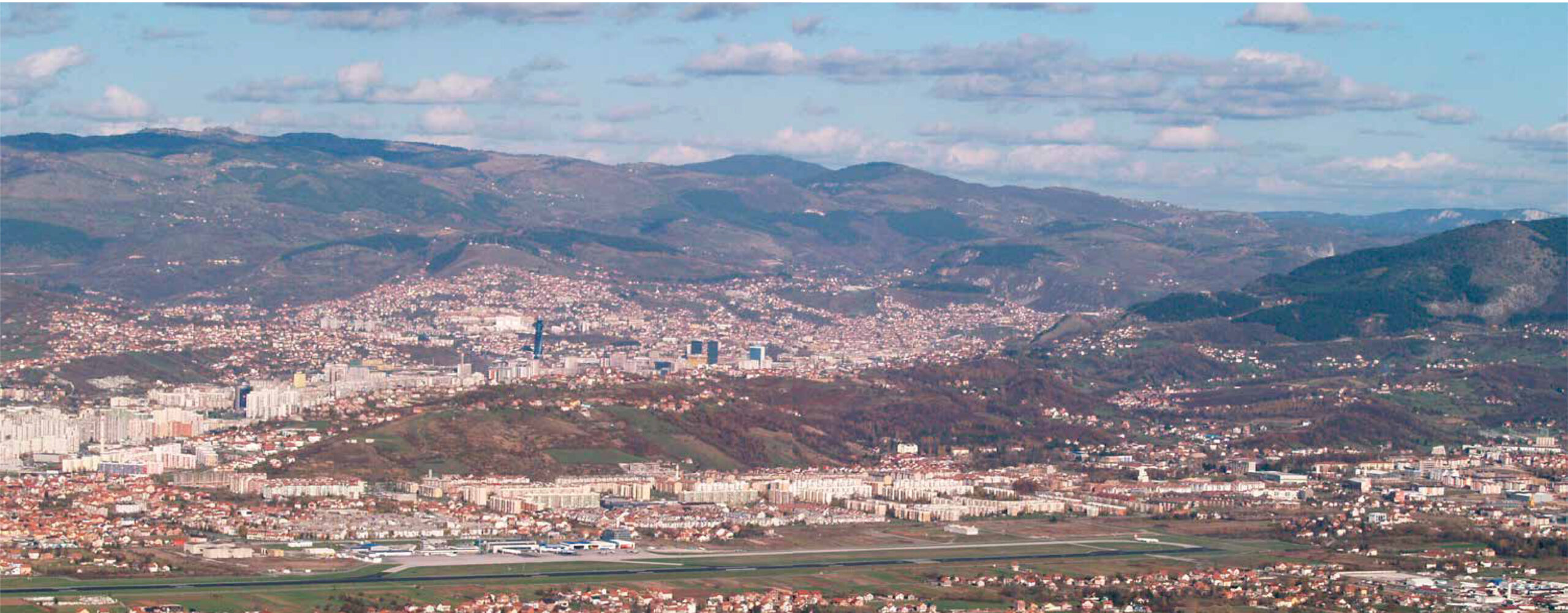 View from Igman Mountain over Sarajevo Field (Polje), the airport, and the Dobrinja settlement into the Sarajevo Valley. Image kindly provided by Nino Sarić.